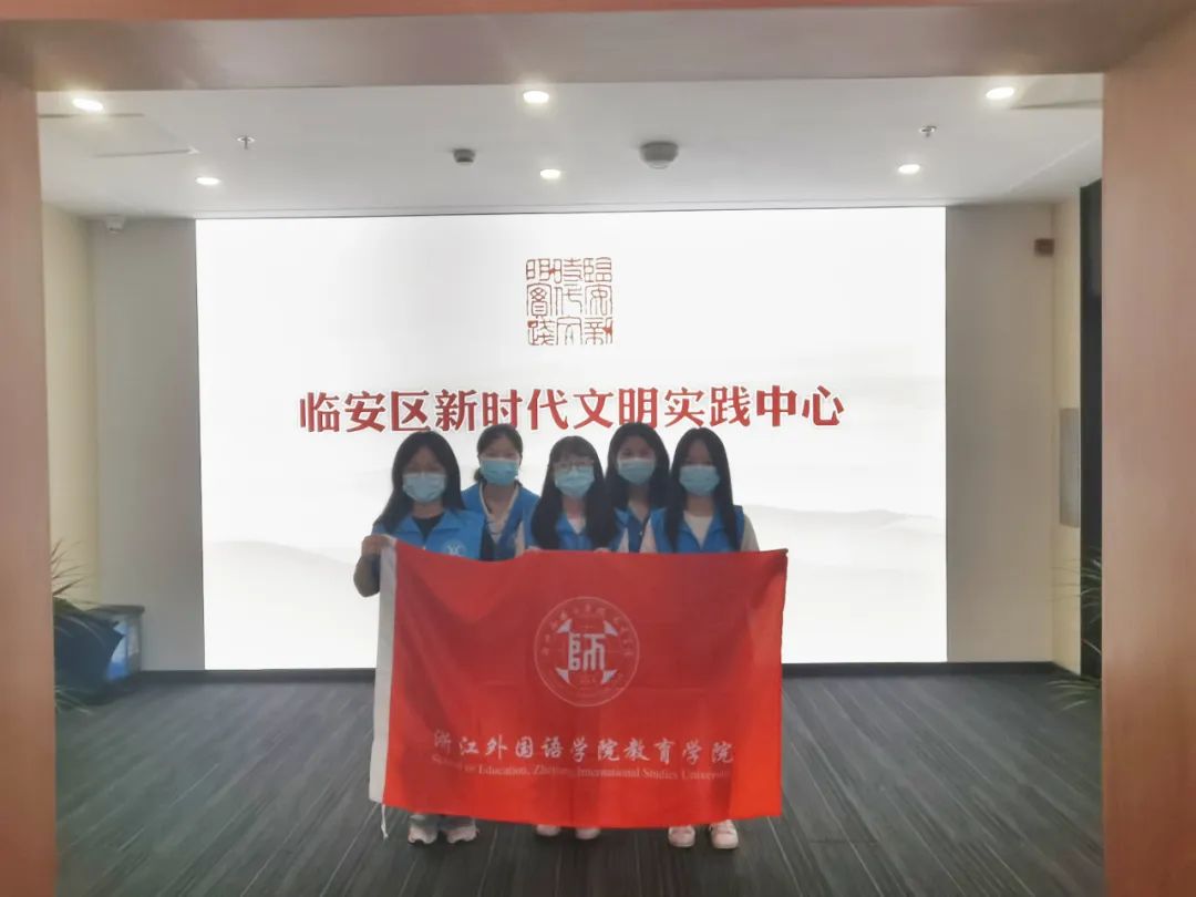 实践团队在临安区新实践文明中心合照