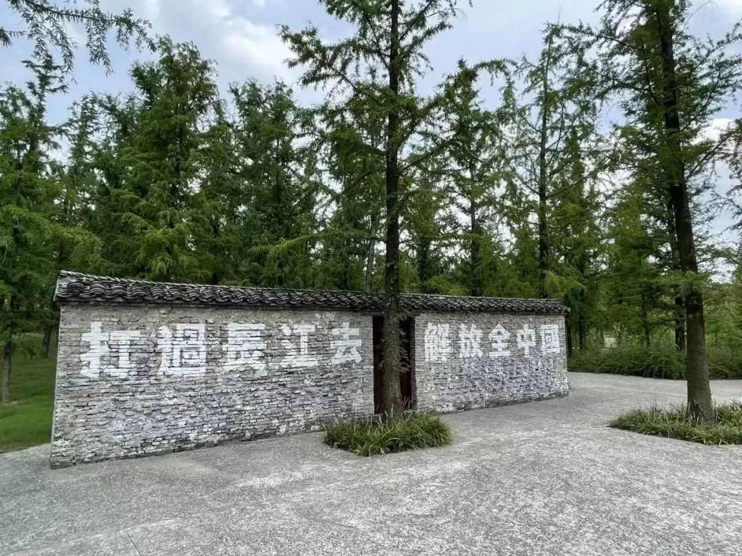 位于江苏靖江的东线第一帆公园墙上的白色大字“打过长江去,解放全中国!”引起了成员们的注意,再现渡江战役的历史尖峰时刻。72 年前,随着党中央的一声号令,百万雄师集结在长江北岸,拉开了千里渡江战线。成员们意识到,这不仅仅是一句口号,更是中华民族和中国人民冲破逆境、寻求胜利的坚定信念。