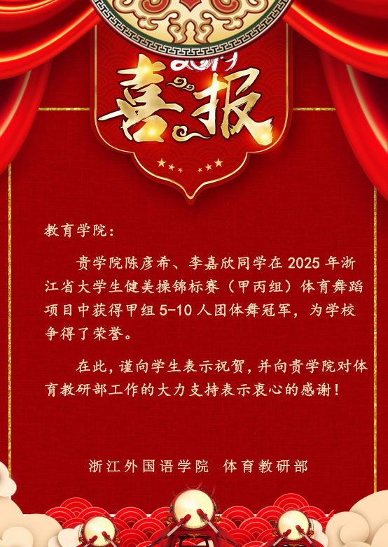 教院学子在2025年浙江省老员工健美操锦标赛中夺冠