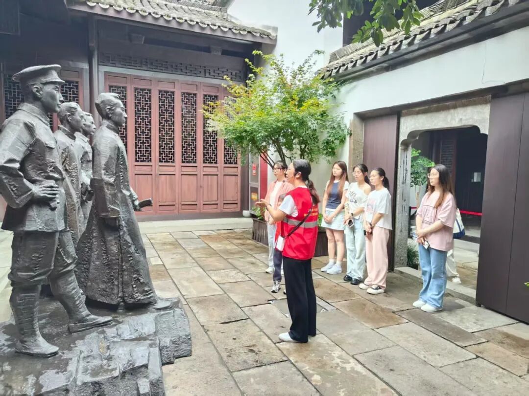 在中国杭州小组纪念馆党员雕像处参观学习