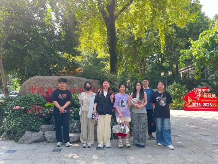 实践团全体在中国共产党杭州历史馆前