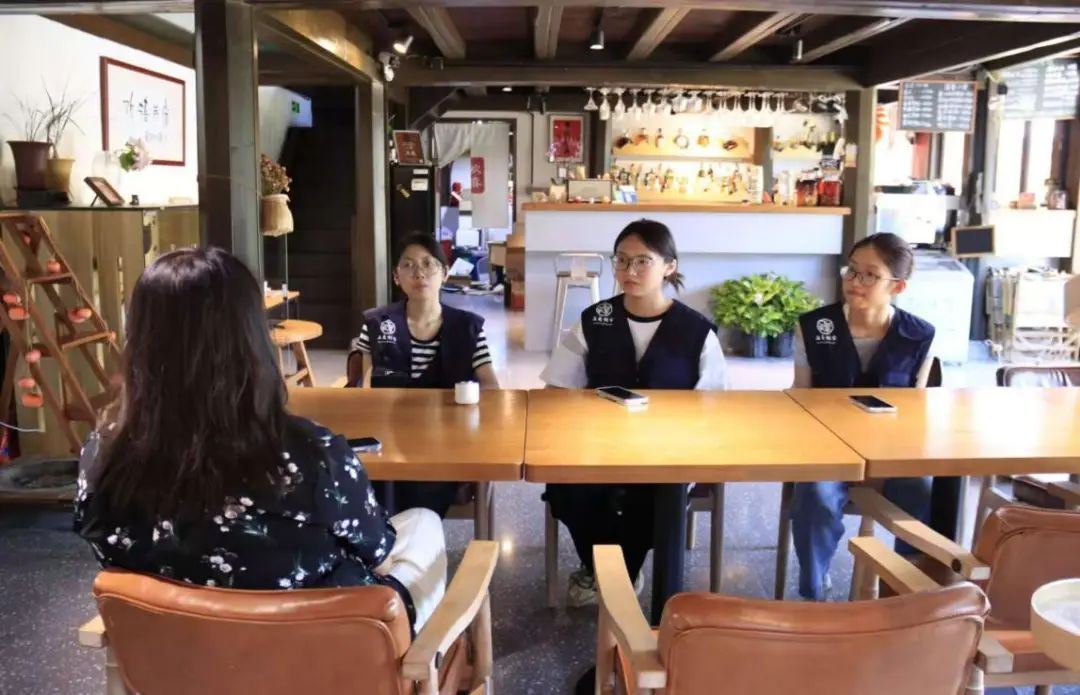 队员们重点访谈民宿经营者,了解到青梅美式、扇面画伴手礼等宋韵文化融合尝试,也了解了商铺闲置、年轻游客停留短等原因与困境;通过与餐饮业经营者进行交流,感受乡村餐饮的淳朴特色;还与年轻游客进行采访,捕捉到“设施不足、缺乏亮点”的反馈。