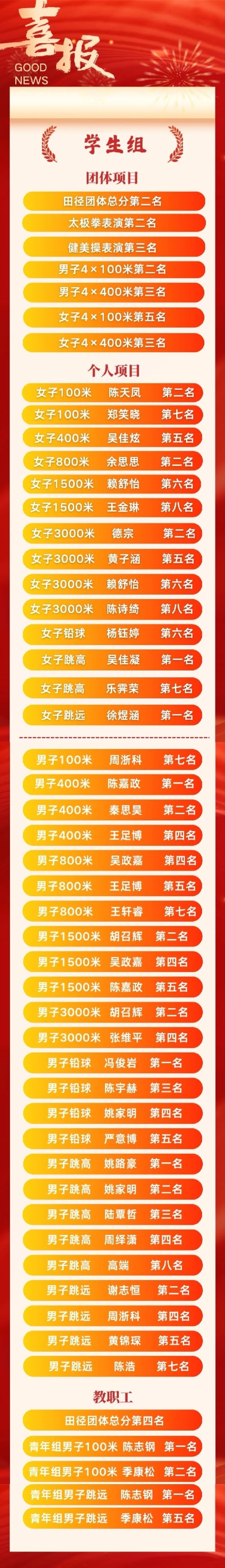 教职工田径团体总分第四名(右三)