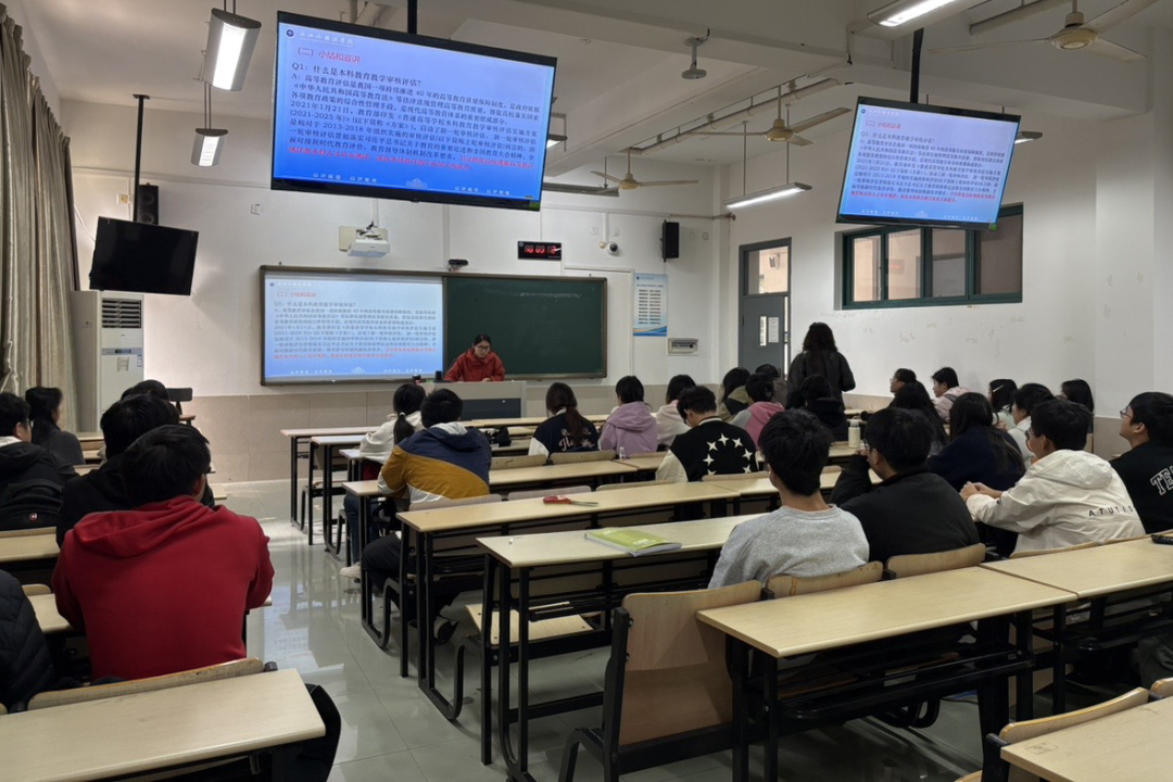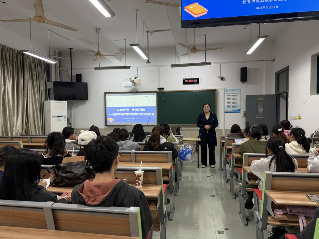 各班班主任强调了审核评估工作的紧迫性和重要性,要求全班同学熟记评估应知应会内容,严格遵守课堂纪律,自觉规范日常行为。同时通过校史故事分享,评估要点解读,互动问答等形式,带领同学们重温学校办学历程中的关键环节,明晰本科教学审核评估对学校发展和个人成长的重要意义,勉励全体同学以严谨勤勉的求学态度和饱满昂扬的精神状态展现教院学子勤奋好学、积极向上的良好风貌,共同营造优良的校风与学风
